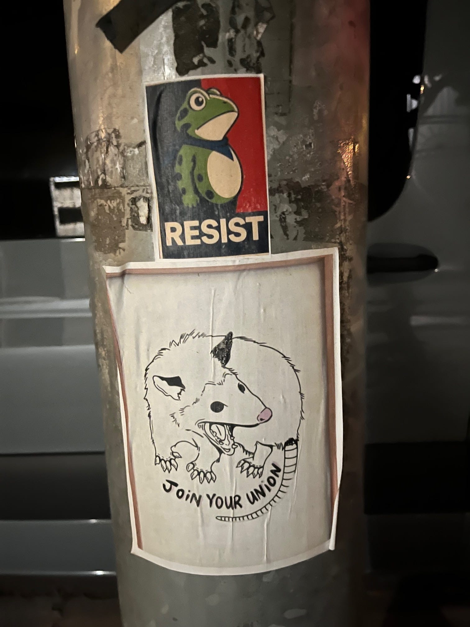 Strong street pole game in our neighborhood of late. Resist and Join Your Union!